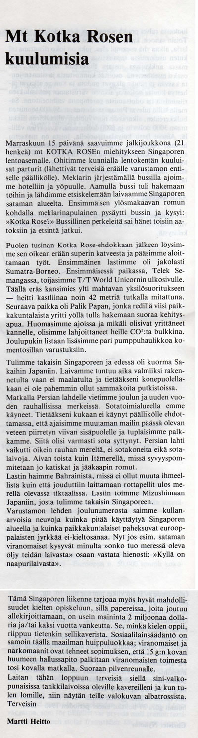 Kotka Rosen kuulumisia 1983