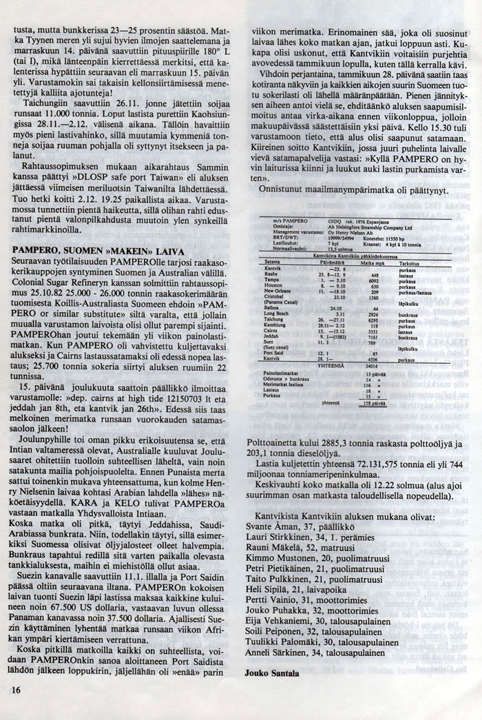 Omaa muistiani haalaten ehdottaisin ajankohdaksi syksyä 1976. Edelleen muistan, kuinka juorutunnilla päivittäin sain tietoa matkan edistymisestä - itse olin Karibialla ja vuonna 1976 SOLANOssa. Kipinänä MISTRALissa oli joku tätä Henry Nielsenin vakioporukkaa, joka piti tapanaan olla päivittäisellä juorutunnilla antamassa ja saamassa sanomille välitysapua. Syyskuun alussa 1976 MISTRALiin on pestattu Mikko Moilanen ja Mikko tuli tutuksi juorutunnilta, vaikken ole koskaan tavannut. T.S.