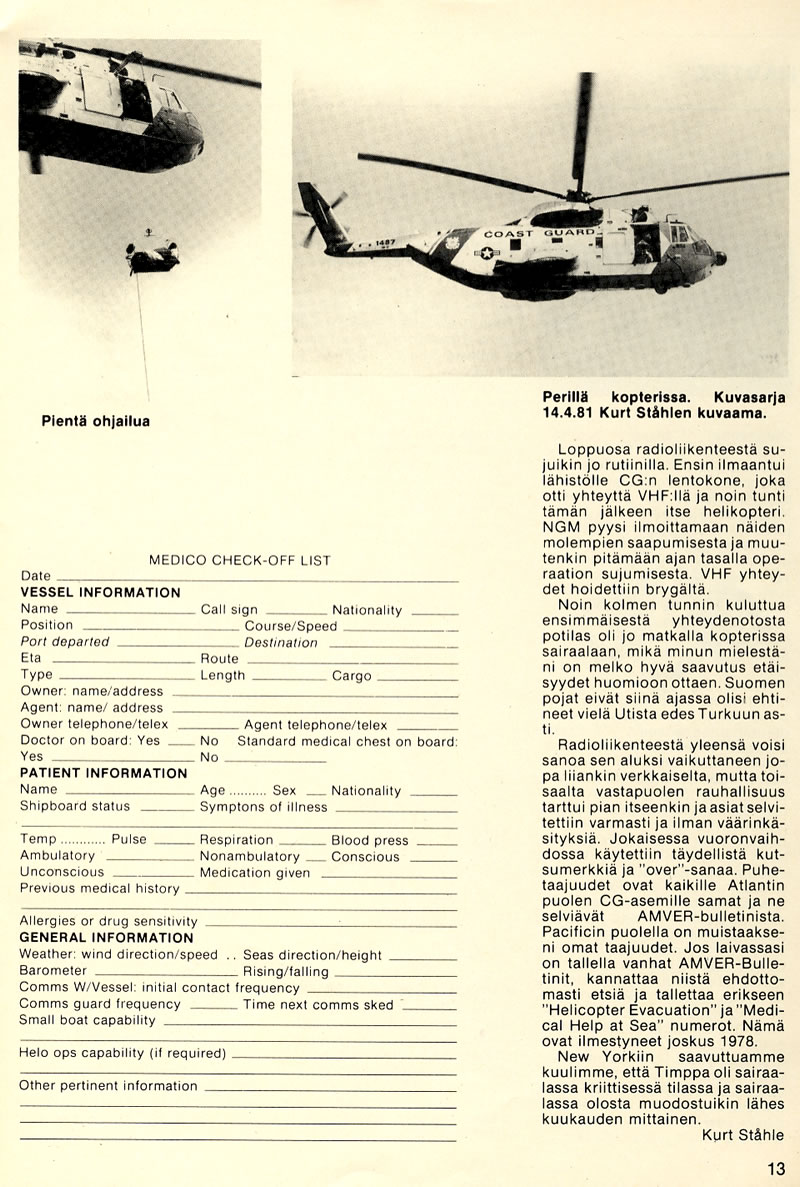 SOLANOn Vaasa Line rahtaus alkoi keväällä 1976. Kun oltiin linjalaiva, ei jääty ankkuriin ketkuttelemaan, vaan päästiin suoraan kaijaan, missä toisin jouduttiin olemaan puolitoista viikkoa.